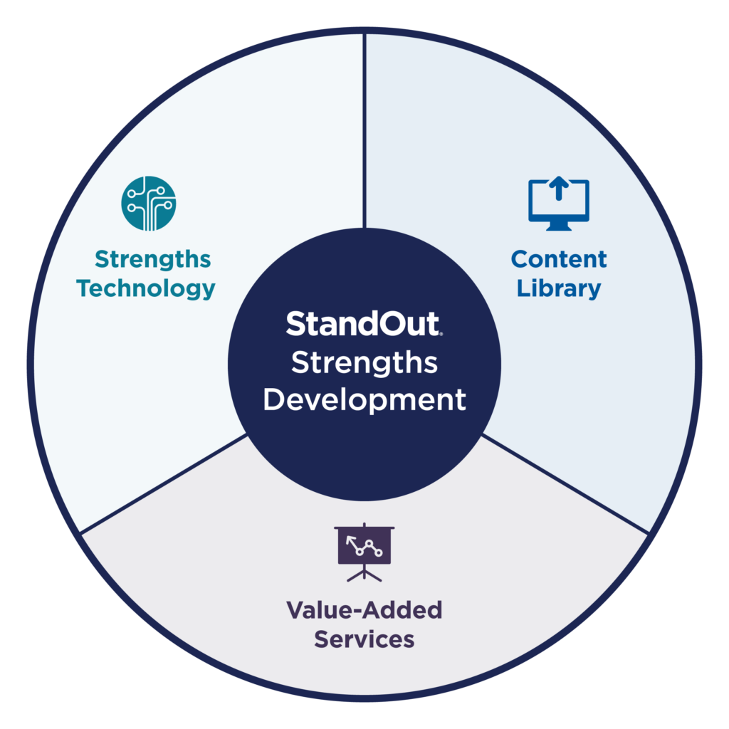 StandOut Strengths Development is a ready-to-use collection of strengths-based learning and services that build engagement, drive performance, and help people thrive at work. It includes StandOut strengths technology, a growing content library (including strengths-based eLearning, videos, tools, instructor-led workshops and certifications), and value-added services that will empower all of your team leaders and team members to access the best of themselves and make their greatest contributions.